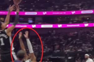 这高度谁来都不好使!文班转身跳投克里斯蒂伸直双臂够不到其腋下